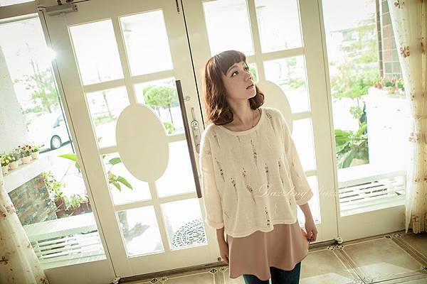 琦琦就是很適合帶一點點女孩,但又不能太女孩的單品,洋裝本身是比較寬鬆的設計,肩的地方又有縷空的設計拼接
