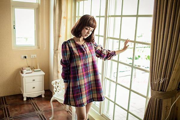 這款洋裝的腰身做超美的!!格紋加上花朵秋意好濃,YA也有帶這款,完全大推薦!